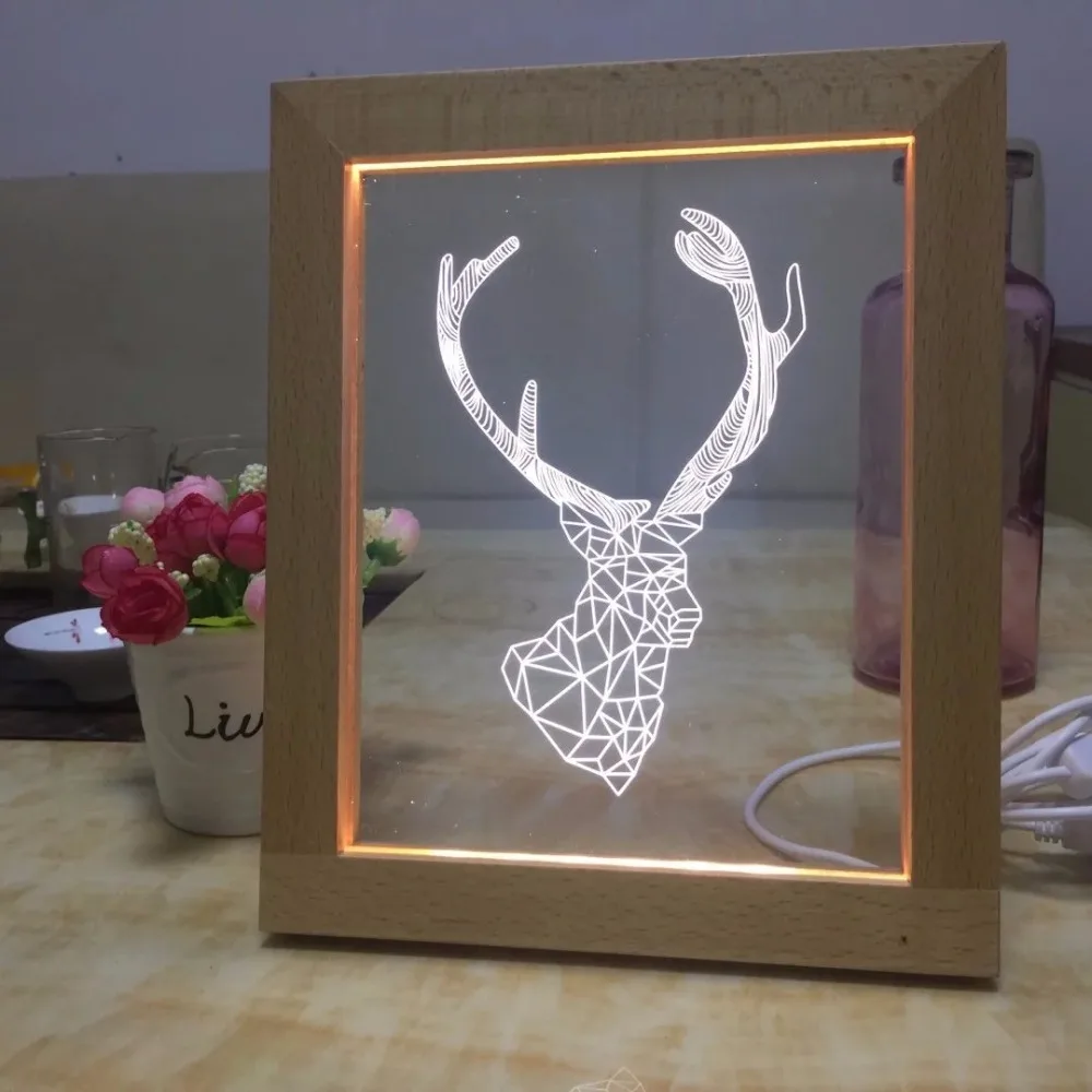 Deerhorn 3d Gambar Bingkai Lampu Dekorasi Desktop Kecil Malam